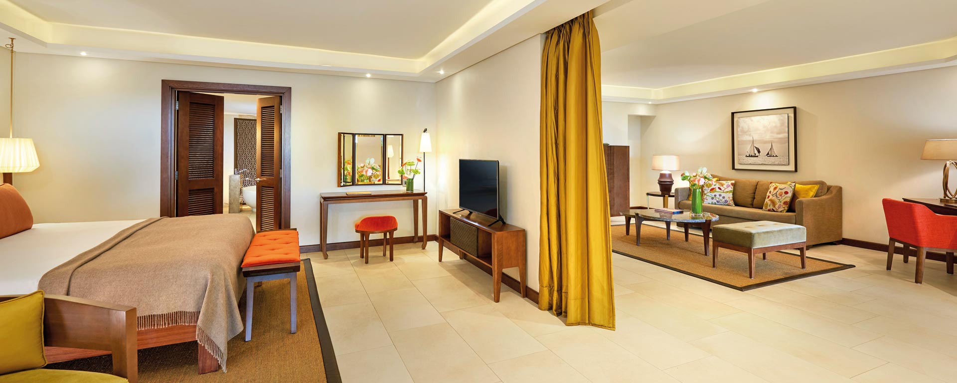 Pomieszczenia ogólnodostępne i apartamenty w Royal Palm Beachcomber Luxury zwiększają luksusowe wrażenia. W hotelu panuje niepowtarzalna atmosfera, naturalny urok i ponadczasowa elegancja.